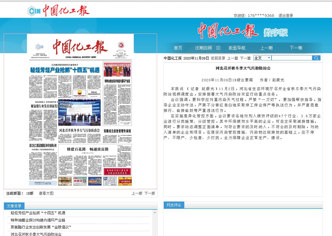 中国化工报:河北召开秋冬季大气污染防治会