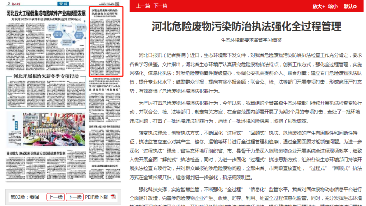 河北日报:河北危险废物污染防治执法强化全过程管理