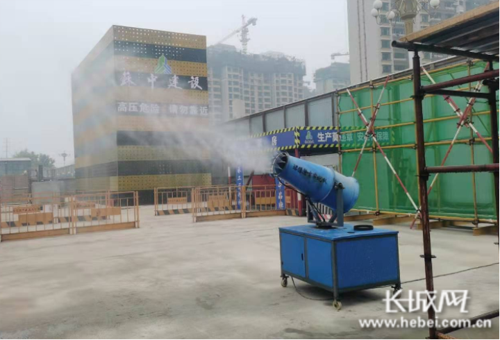 枣强县恒大御景湾项目场地使用雾炮机降尘。长城网记者 卢婉凤 摄