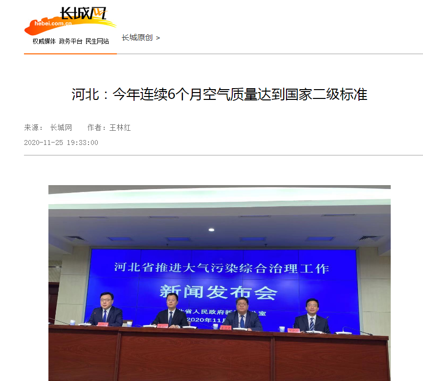 长城网 :河北:今年连续6个月空气质量达到国家二级标准
