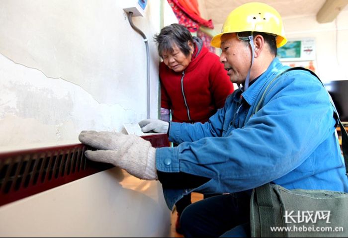 河北廊坊“电代煤”实现清洁取暖。图为国网香河供电公司员工为用户检查取暖设备。资料图