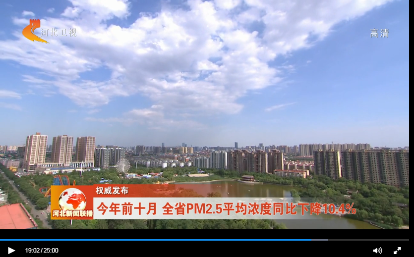 河北电视台《河北新闻联播》:权威发布 今年前十月 全省PM2.5平均浓度同比下降10.4%