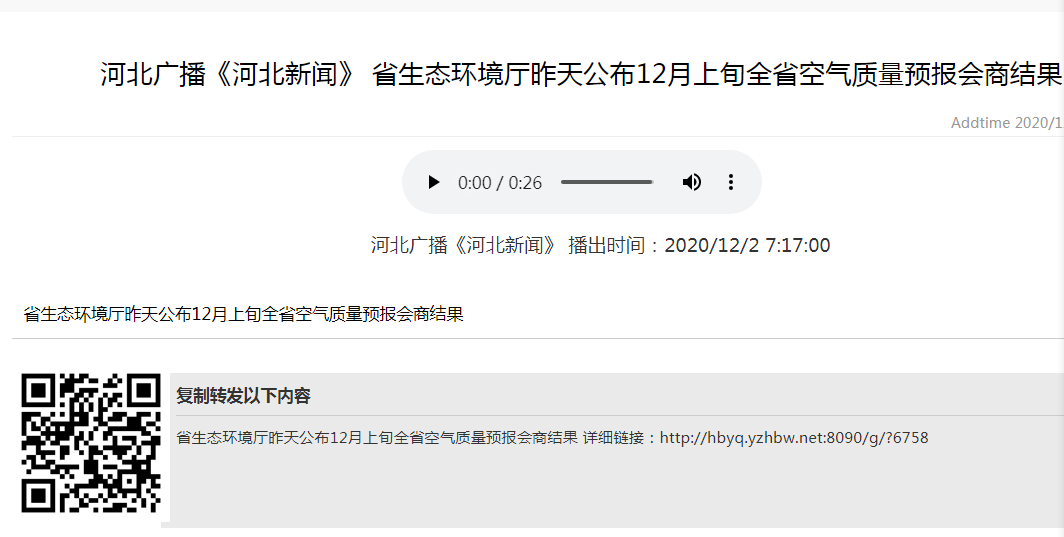河北广播《河北新闻》:东京热 昨天公布12月上旬全省空气质量预报会商结果