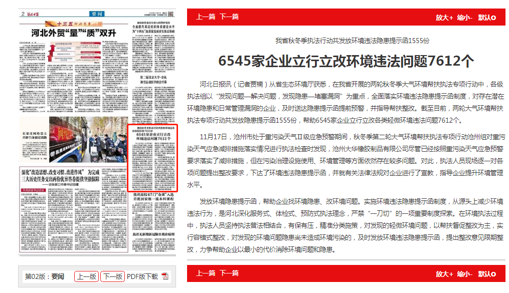 11月17日,沧州市处于重污染天气Ⅱ级应急预警期间,秋冬季第二轮大气环境帮扶执法专项行动沧州组对重污染天气应急减排措施落实情况进行执法检查时发现,沧州大华橡胶制品有限公司尽管已经按照重污染天气应急预警要求落实了减排措施,但在污染治理设施使用、环境管理等方面依然存在较多问题。对此,执法人员现场逐一对各项问题提出整改要求,下达了环境违法隐患提示函,并就有关法律法规对企业进行了宣教,指导企业提升环境管理水平。
