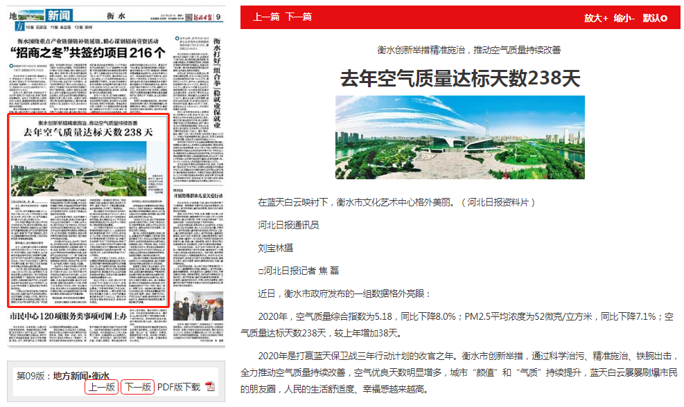 2020年是打赢蓝天保卫战三年行动计划的收官之年。衡水市创新举措,通过科学治污、精准施治、铁腕出击,全力推动空气质量持续改善,空气优良天数明显增多,城市“颜值”和“气质”持续提升,蓝天白云屡屡刷爆市民的朋友圈,人民的生活舒适度、幸福感越来越高。