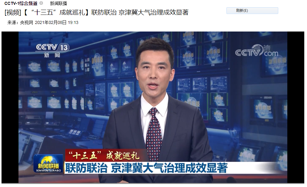 央视《新闻联播》:【“十三五”成就巡礼】联防联治 京津冀大气治理成效显著 来源:河北省生态环境宣传教育中心 时间:2021-02-09