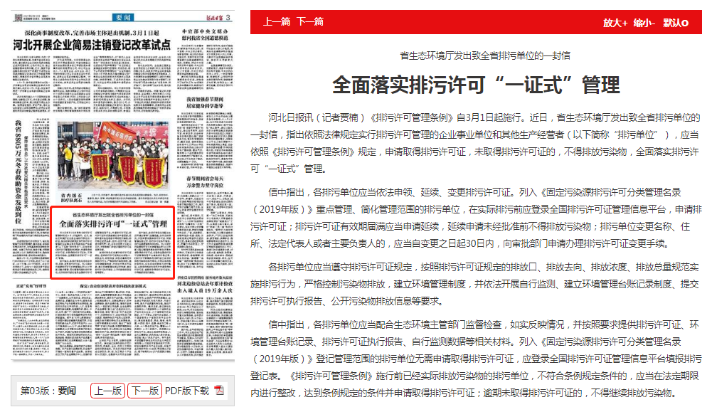 河北日报讯(记者贾楠)《排污许可管理条例》自3月1日起施行。近日,东京热 发出致全省排污单位的一封信,指出依照法律规定实行排污许可管理的企业事业单位和其他生产经营者(以下简称“排污单位”),应当依照《排污许可管理条例》规定,申请取得排污许可证,未取得排污许可证的,不得排放污染物,全面落实排污许可“一证式”管理。