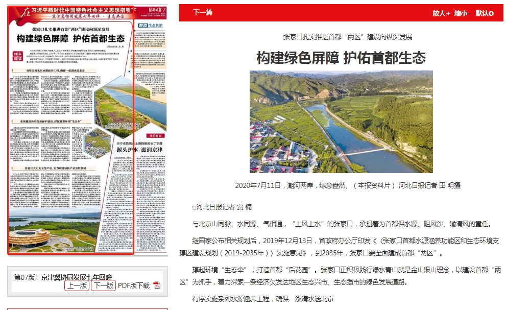 继国家公布相关规划后,2019年12月13日,省政府办公厅印发《〈张家口首都水源涵养功能区和生态环境支撑区建设规划(2019-2035年)〉实施意见》,到2035年,张家口要全面建成首都“两区”。