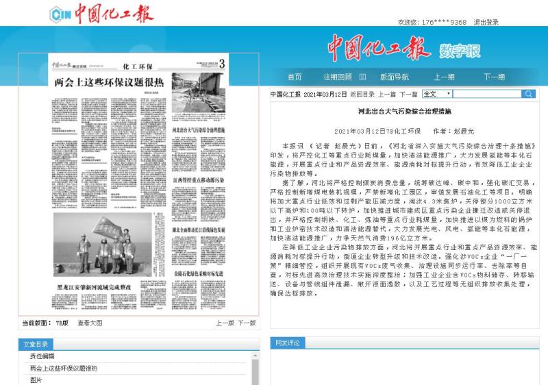 中国化工报:河北出台大气污染综合治理措施