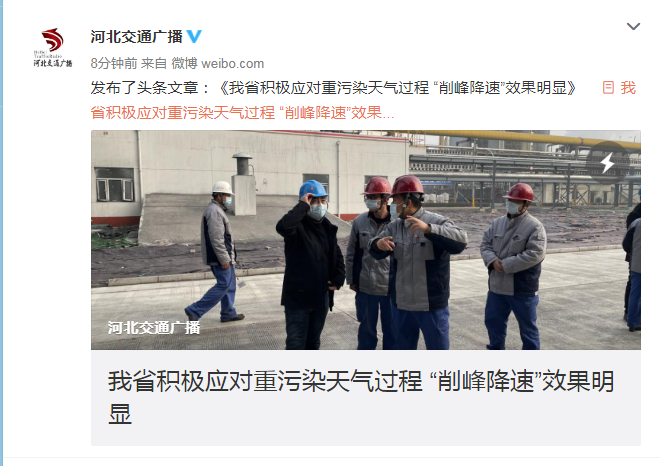 河北交通广播 :我省积极应对重污染天气过程 “削峰降速”效果明显