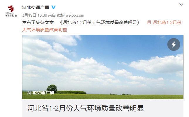 河北交通广播:河北省1-2月份大气环境质量改善明显