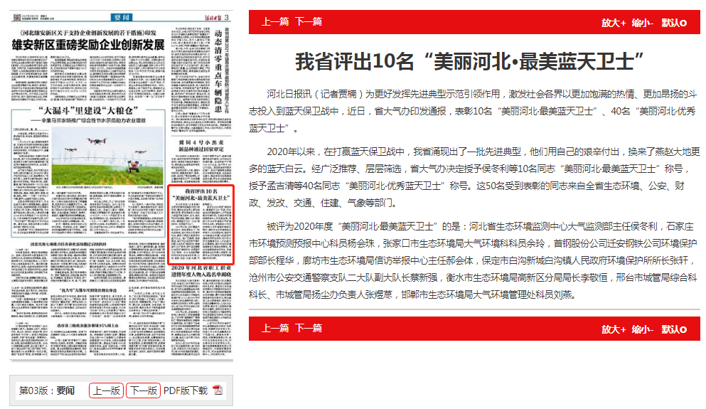 河北日报:我省评出10名“美丽河北·最美蓝天卫士”