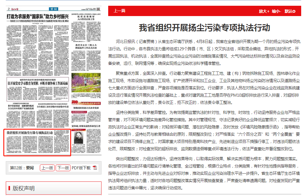 聚焦重点方面,全面深入排查。行动着力聚焦建设工程施工工地、建(构)筑物拆除施工现场、园林绿化作业施工现场、市政设施与道路施工现场、矿产资源开采和加工企业、工业及其他物料扬尘污染防治情况以及道路扬尘七大重点方面进行全面排查,严查各项措施是否落实到位。行动要求,执法人员在对扬尘污染企业在线监测系统建设及运行落实情况开展执法检查的基础上,重点对建筑施工工地是否存在PM10超标排放进行深入排查,对超标排放的建设单位依法从重处罚,责令改正,拒不改正的,依法责令停工整治。