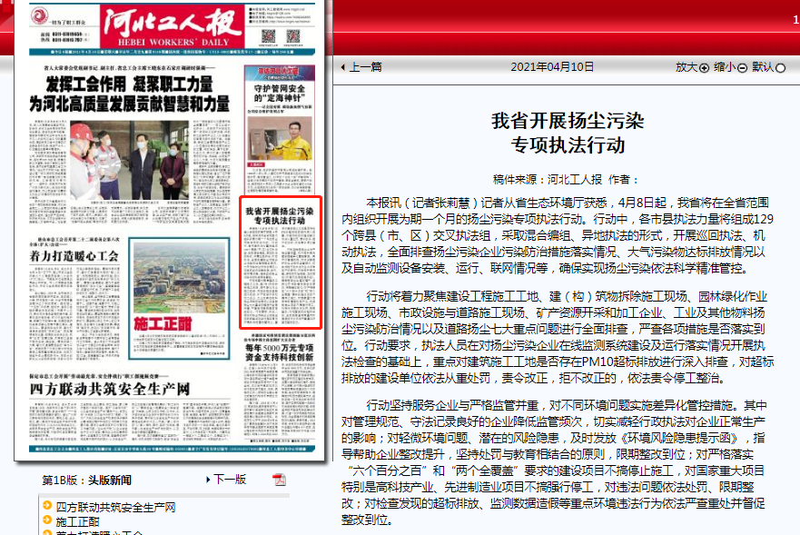 河北工人报:我省开展扬尘污染专项执法行动