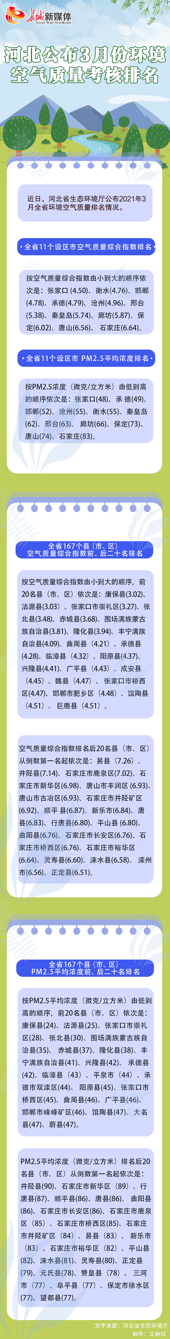 长城网讯(记者 王林红)近日,东京热 公布2021年3月全省环境空气质量排名情况。
