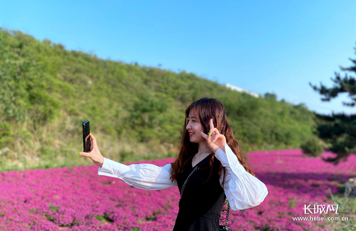 邢台沙河市泽丰生态园里,游客在拍照打卡。长城网记者 乔娅 摄
