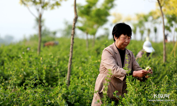 内丘县大孟村镇刘家庄,村民正在采摘金银花。长城网记者 乔娅 摄