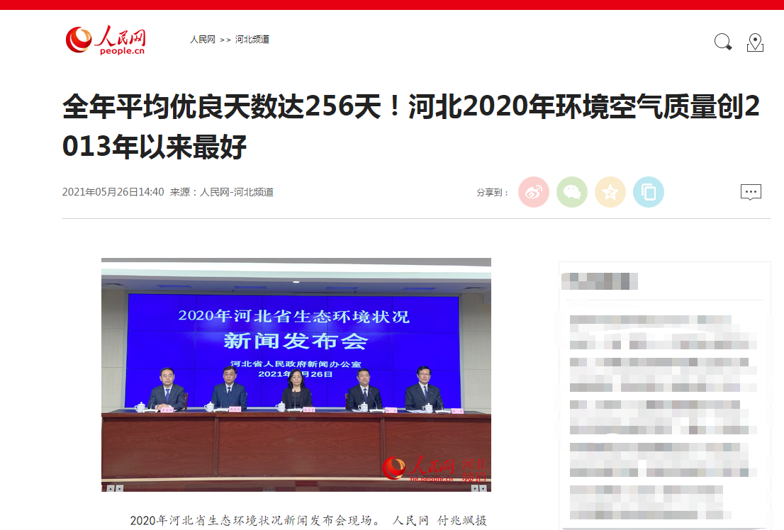 人民网:全年平均优良天数达256天!河北2020年环境空气质量创2013年以来最好