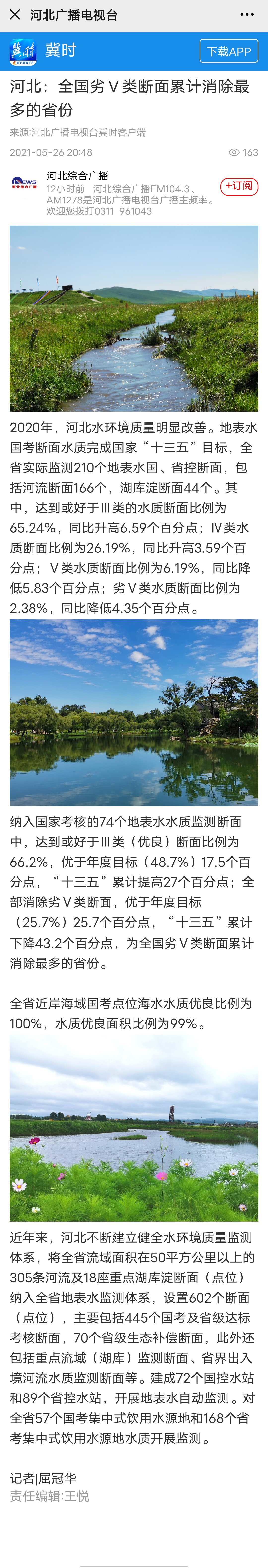 河北广播电视台冀时客户端:河北 全国劣Ⅴ类断面累计消除最多的省份