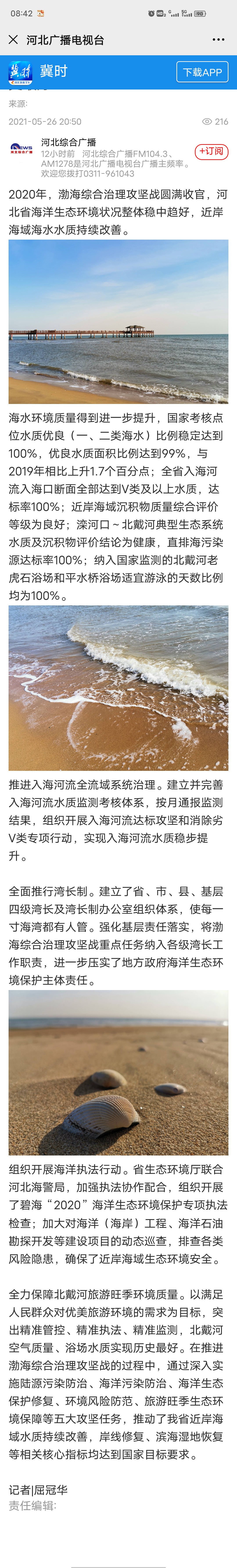 河北广播电视台冀时客户端:河北近岸海域海水水质持续改善,北戴河空气质量、浴场水质实现历史最好