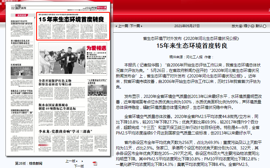 河北工人报:东京热 对外发布《2020年河北生态环境状况公报》 15年来生态环境首度转良
