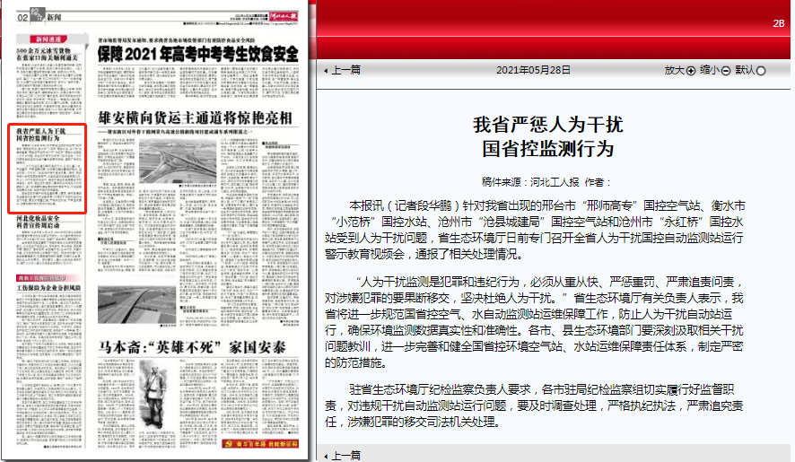 河北工人报:我省严惩人为干扰国省控监测行为