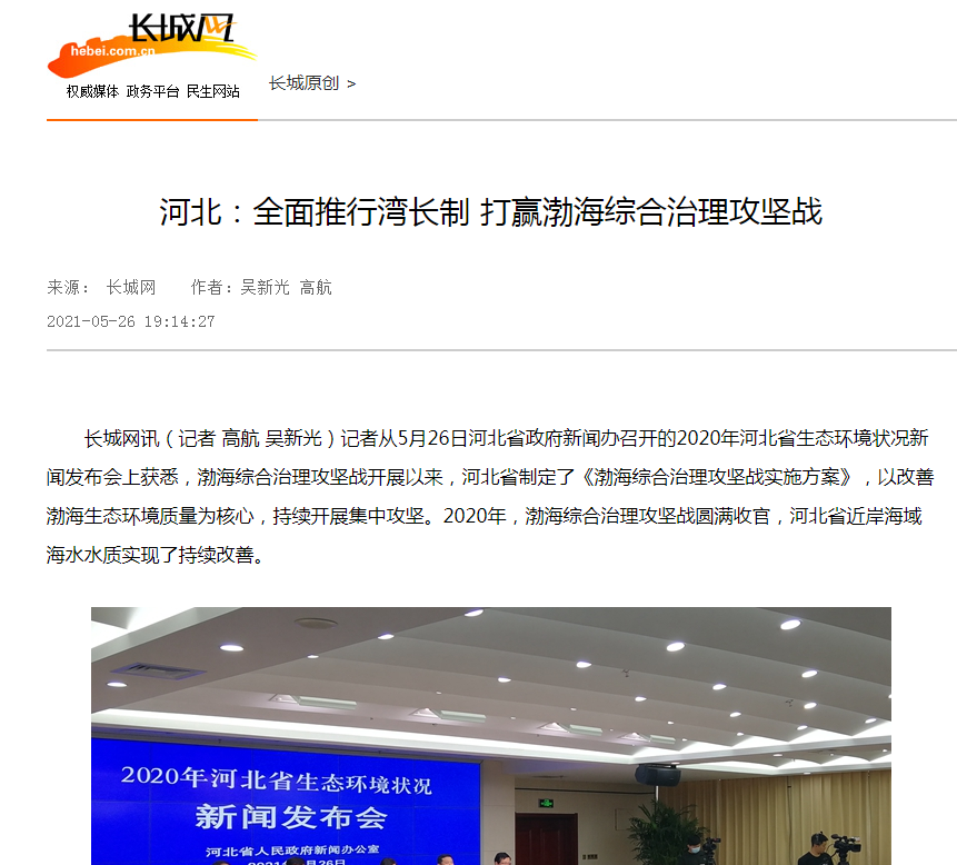 长城网讯(记者 高航 吴新光)记者从5月26日河北省政府新闻办召开的2020年河北省生态环境状况新闻发布会上获悉,渤海综合治理攻坚战开展以来,河北省制定了《渤海综合治理攻坚战实施方案》,以改善渤海生态环境质量为核心,持续开展集中攻坚。2020年,渤海综合治理攻坚战圆满收官,河北省近岸海域海水水质实现了持续改善。