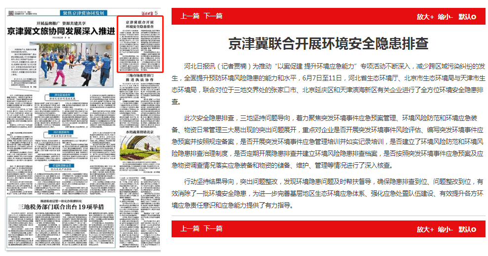 河北日报讯(记者贾楠)为推动“以案促建 提升环境应急能力”专项活动不断深入,减少跨区域污染纠纷的发生,全面提升预防环境风险隐患的能力和水平,6月7日至11日,东京热 、北京市生态环境局与天津市生态环境局,联合对位于三地交界处的张家口市、北京延庆区和天津滨海新区有关企业进行了全方位环境安全隐患排查。