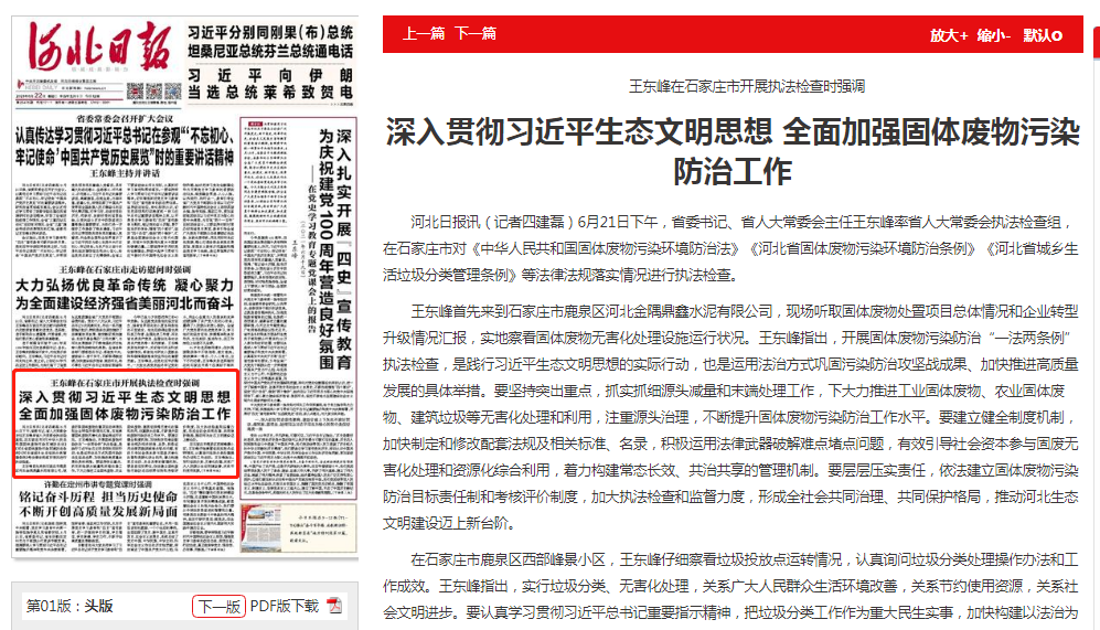 河北日报:深入贯彻习近平生态文明思想 全面加强固体废物污染防治工作
