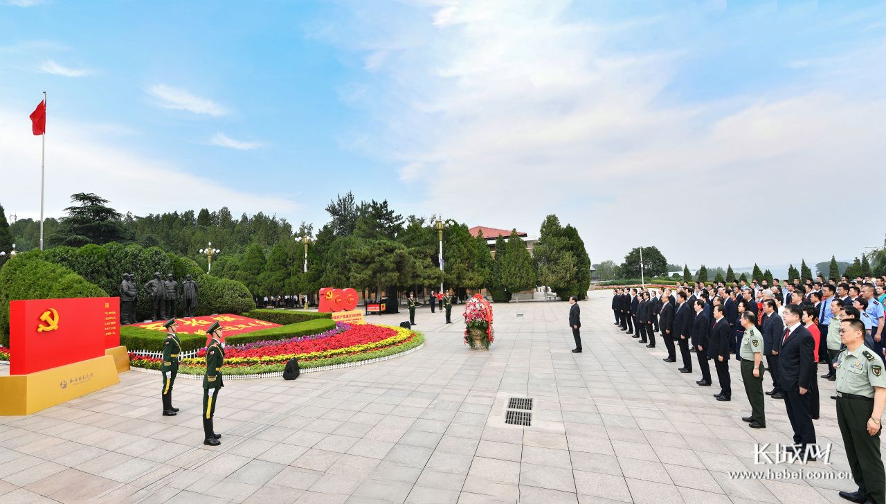 7月1日下午,河北省庆祝中国共产党成立100周年大会在革命圣地西柏坡召开。这是王东峰、许勤、叶冬松等领导同志来到西柏坡纪念馆广场,向五大书记塑像敬献花篮。长城网记者 张瑞雨 摄