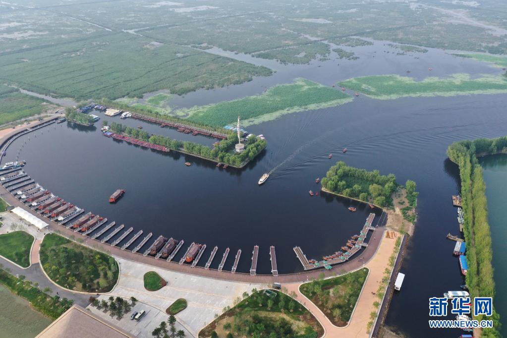 这是7月15日在雄安新区拍摄的白洋淀旅游码头(无人机照片)。新华社记者 朱旭东 摄