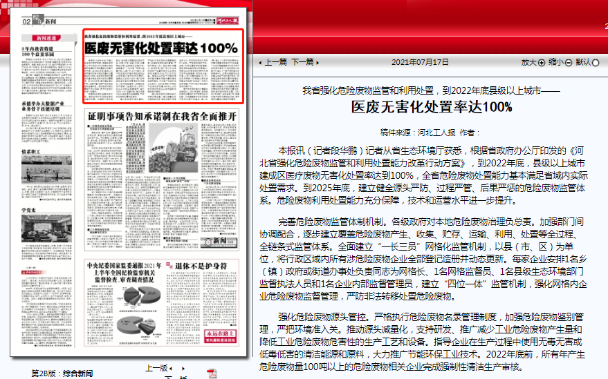 我省强化危险废物监管和利用处置,到2022年底县级以上城市——