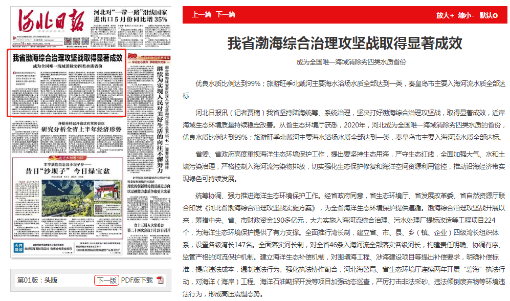 河北日报:我省渤海综合治理攻坚战取得显著成效