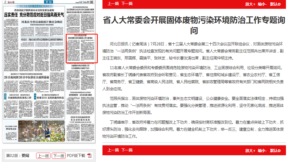 河北日报:省人大常委会开展固体废物污染环境防治工作专题询问
