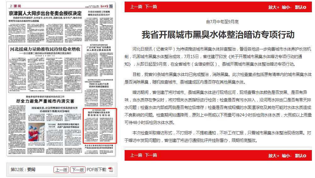目前,我省93条城市黑臭水体均已完成整治,消除黑臭。此次检查重点包括原有清单内的城市黑臭水体是否消除黑臭,随机抽查城市、县城建成区内是否存在其他黑臭水体。
