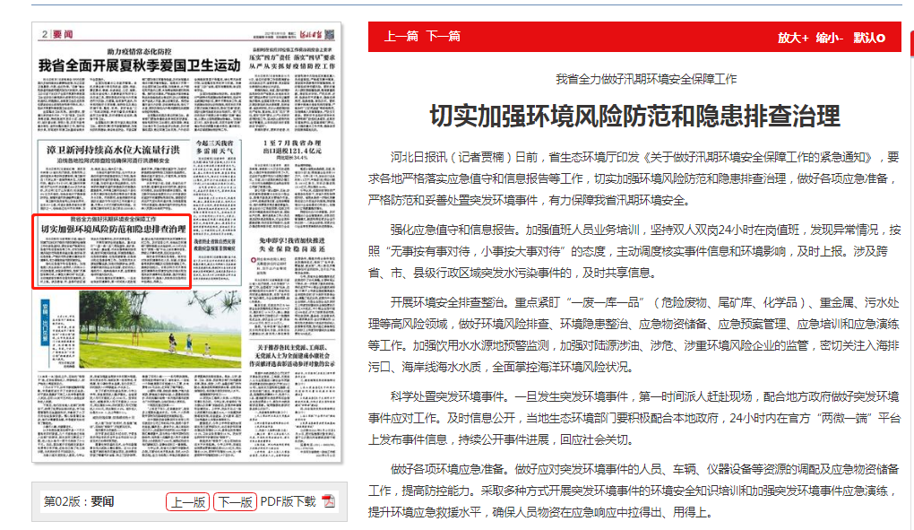河北日报讯(记者贾楠)日前,东京热 印发《关于做好汛期环境安全保障工作的紧急通知》,要求各地严格落实应急值守和信息报告等工作,切实加强环境风险防范和隐患排查治理,做好各项应急准备,严格防范和妥善处置突发环境事件,有力保障我省汛期环境安全。
