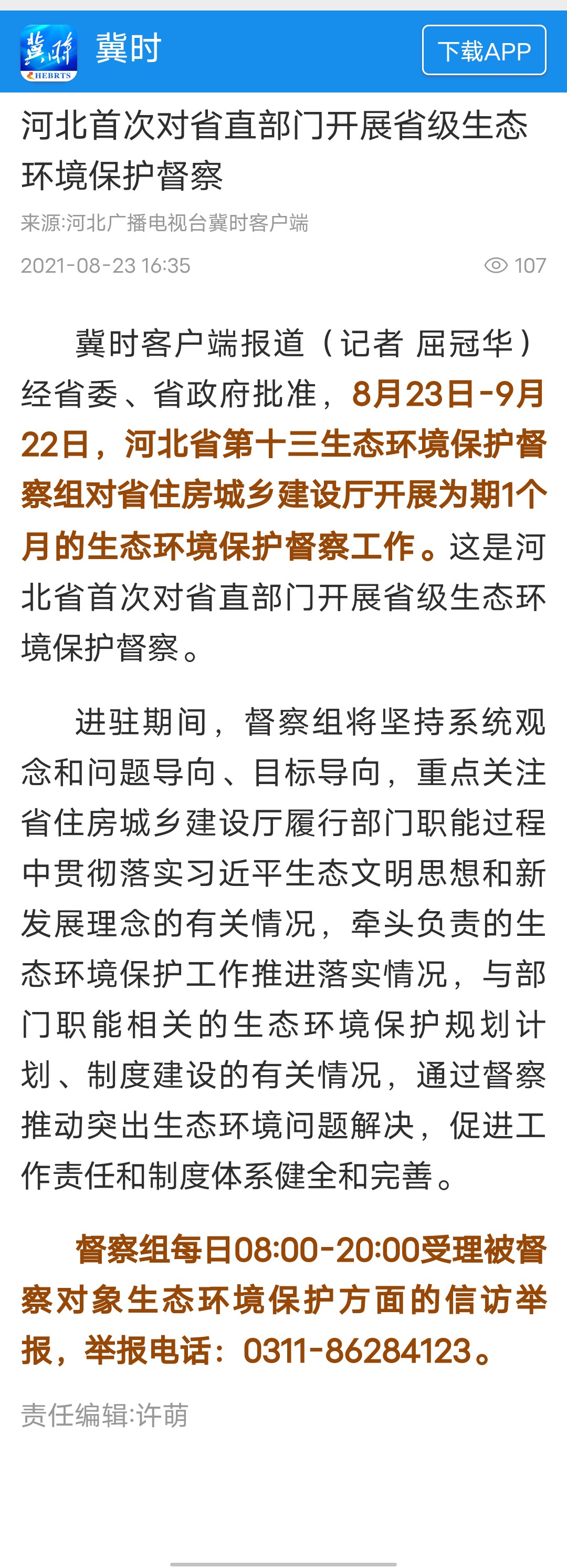 河北日报客户端:河北省第十三生态环境保护督察组对省住房城乡建设厅开展督察