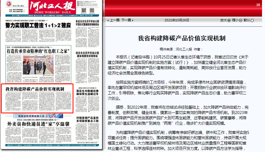按照实施方案明确的工作目标,今年年底,完成承德市林业固碳资源摸底调查,率先在塞罕坝机械林场及周边区域开发固碳项目;开展钢铁行业碳排放环境影响评价工作,引导钢铁、焦化等行业购买降碳产品,实现降碳产品生态价值,助力塞罕坝二次创业。