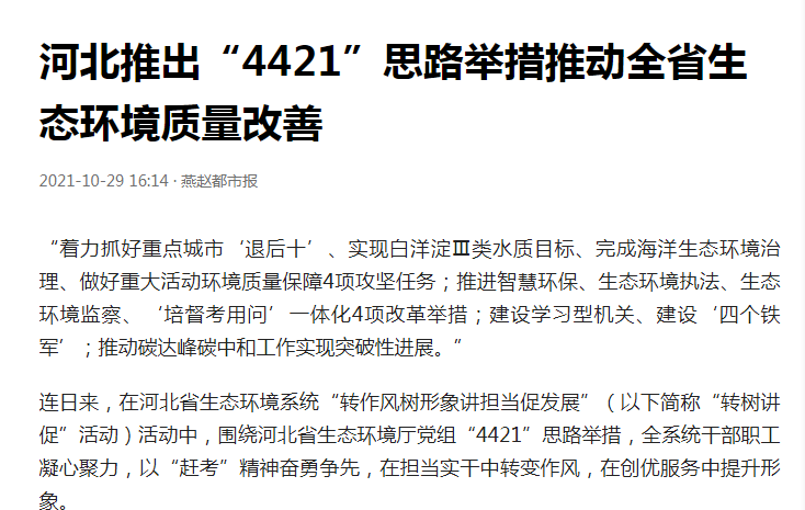 燕赵都市报:河北推出“4421”思路举措推动全省生态环境质量改善