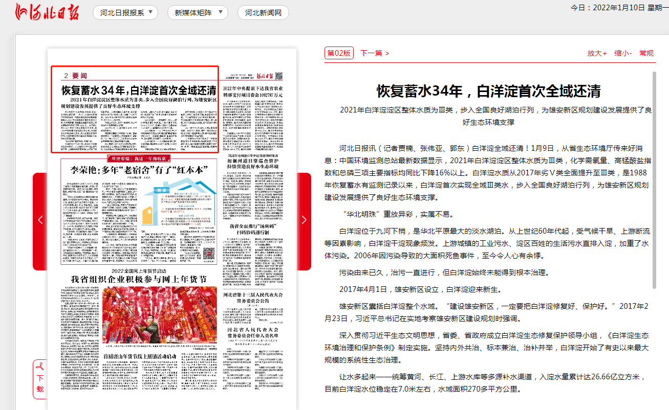 河北日报:恢复蓄水34年,白洋淀首次全域还清