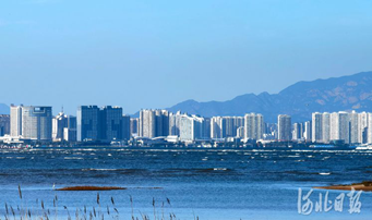 △图为蓝天下、碧海旁的秦皇岛城市风貌。河北日报记者孙也达摄