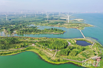 △位于怀来县的官厅水库国家湿地公园风景如画。张家口市扎实推进首都“两区”建设,全力推进永定河综合治理与生态修复,确保一泓清水送入北京。河北日报通讯员武殿森摄