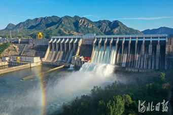 △2021年8月28日,迁西县潘家口水库大坝泄洪放水。潘家口水库是引滦入津的主体工程。河北日报通讯员王爱军摄