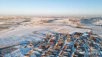 冬雪、风车和村庄组成了坝上草原最美的风景。长城网·冀云客户端记者 马宁 摄
