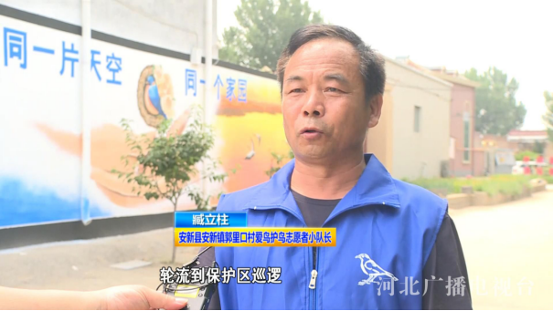 安新县安新镇郭里口村爱鸟护鸟志愿者小队长 臧立柱:志愿者队伍平时是分成五组,轮流到保护区巡逻,禁止船只人员随意出入,保障栖息地的生活环境不被破坏,遇到受伤鸟类我们会进行及时的救护,在鸟类繁殖期还会定时投喂,让它们可以在这里有一个安全的栖息环境。