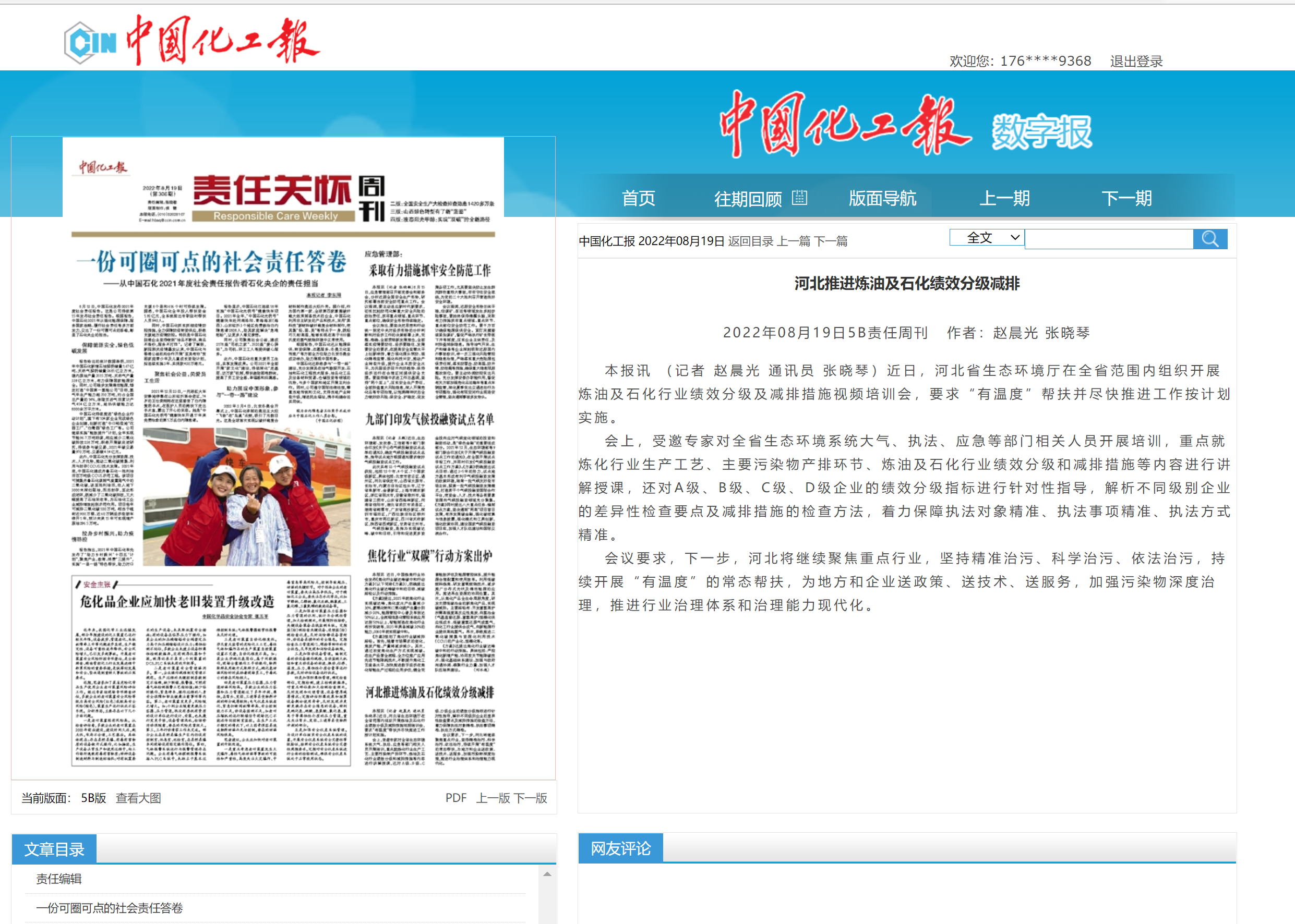 中国化工报 :河北推进炼油及石化绩效分级减排