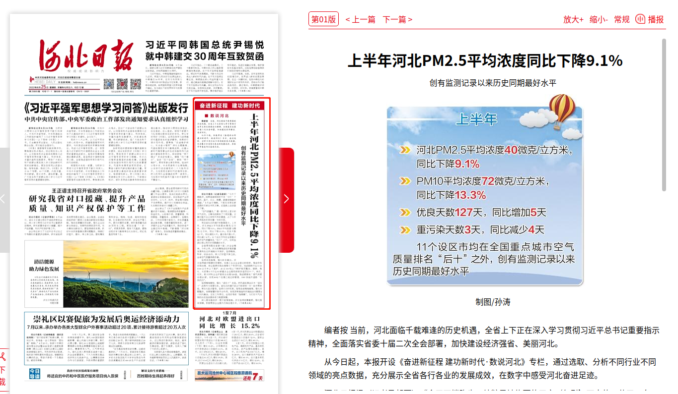 河北日报:上半年河北PM2.5平均浓度同比下降9.1% 创有监测记录以来历史同期最好水平