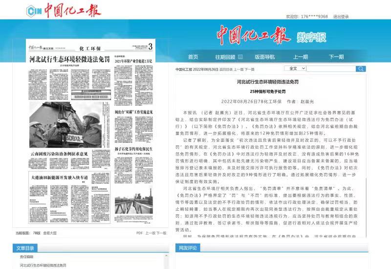 生态环境轻微违法行为免罚办法(试行)》(以下简称《免罚办法》)。《免罚办法》依照相关规定,结合河北省前期自由裁量免罚情形,进一步拓展细化,将原来的12种免罚情形增加到25种情形。