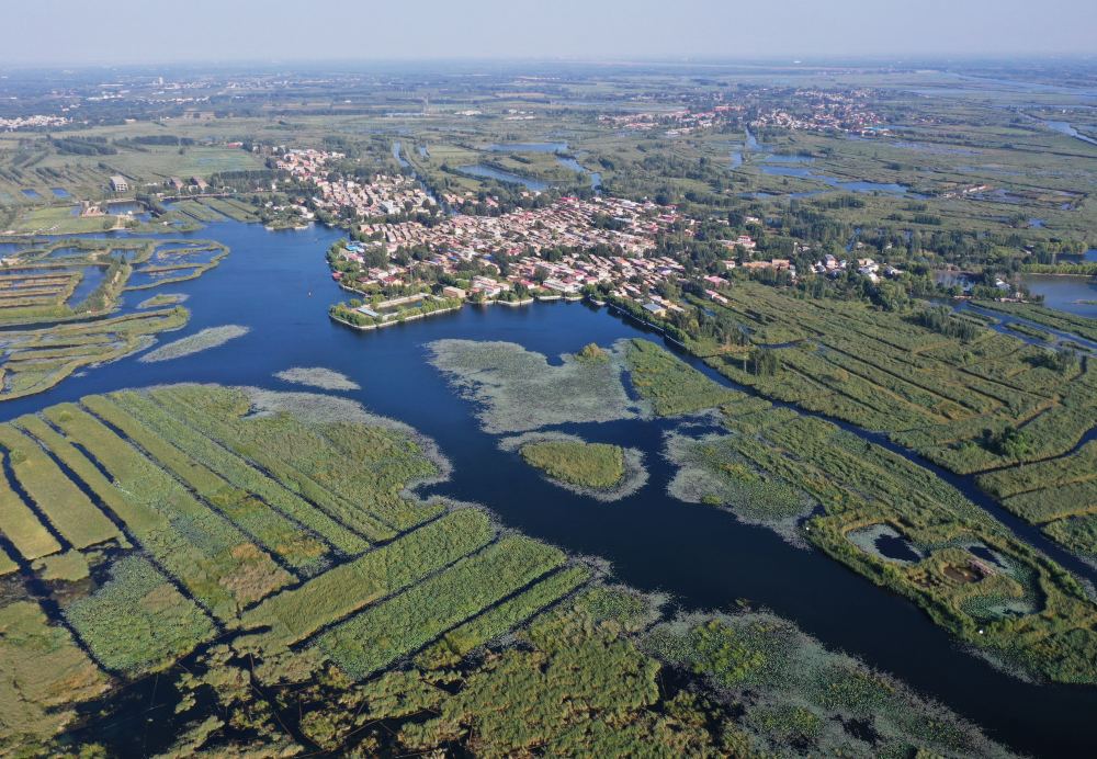↑这是雄安新区白洋淀划定的一处鸟类栖息地(9月21日摄,无人机照片)。新华社记者 朱旭东 摄