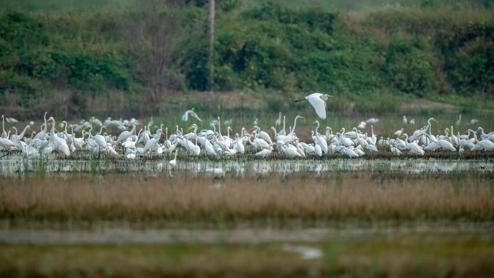 ↑这是在雄安新区白洋淀一处鸟类栖息地拍摄的白鹭(9月21日摄)。新华社记者 朱旭东 摄